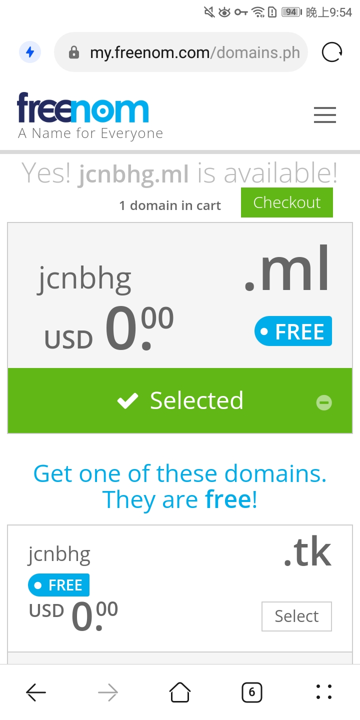3.进去后,由于我们在检查的时候就已经带了后辍,所以直接点击Checkout(图七),让后选择选择域名到期时间,推荐12个月[滑稽]。然后点击Continue。(图八)