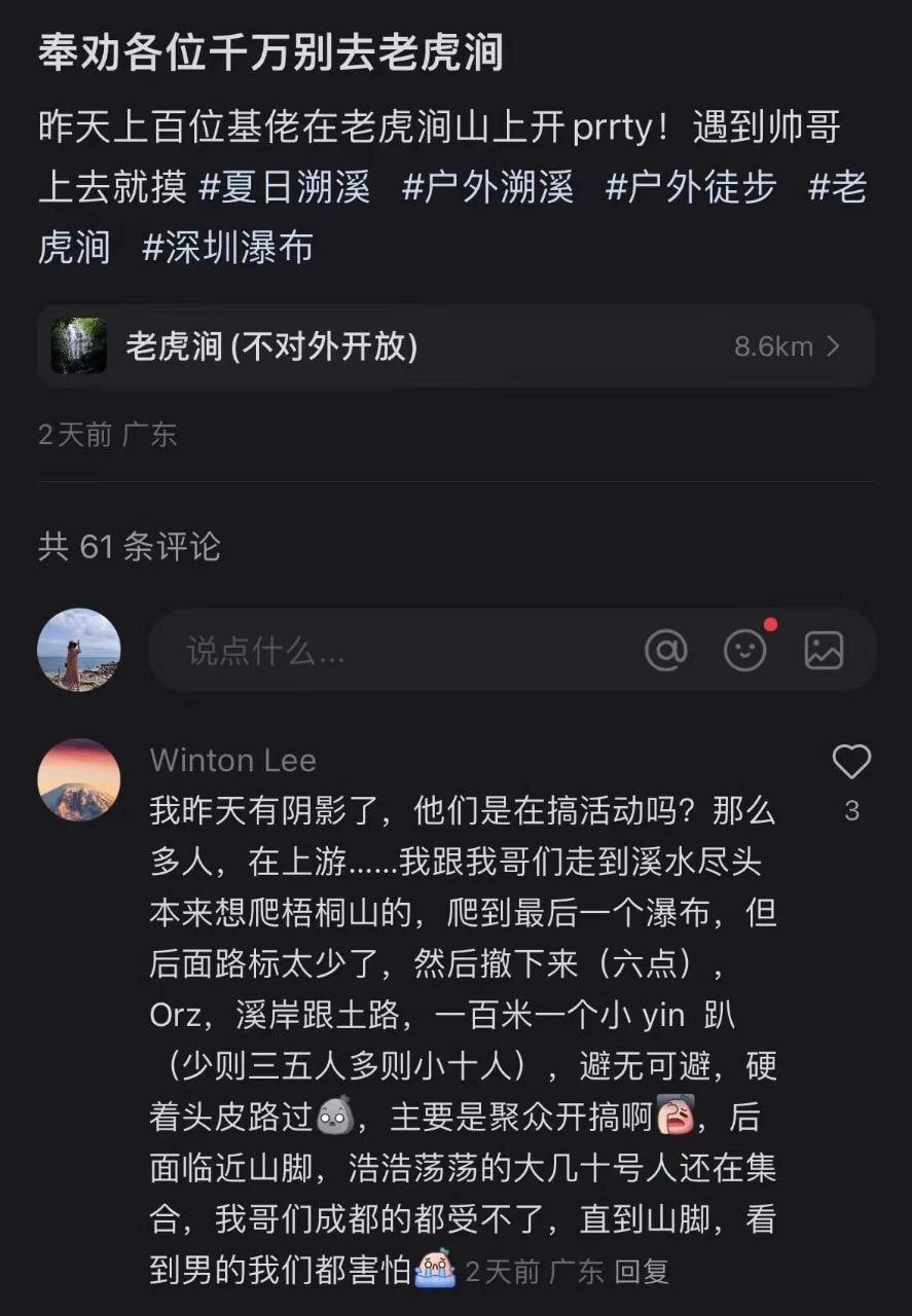 深圳梧桐山 “老虎涧” 夜间百人基佬野战淫趴 场面真壮观