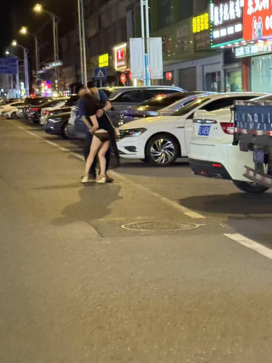 大马路上直接口胶!骚啊!