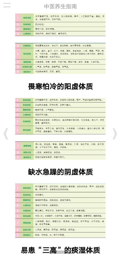 这款APP详细解说了如何辨识体质类型,根据不同体质列出了相对应的多种生活调养方式(精神调养、饮食调养、运动调养等)供大家参考。身体是革命的本钱,大家在日常生活中要注意自己的身体,只有身体健康了,才能做大事,真做事,做真事,承传中华民族传统美德。app已经过本人安装测试并使用,安全无毒请放心使用,应用相关界面图我已放在文中供各位参考,下载链接在文末。(APP建议用来参考)