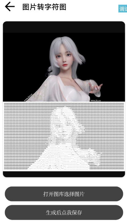 功能虽然简单,但是实用,图片转字符图,一键生成