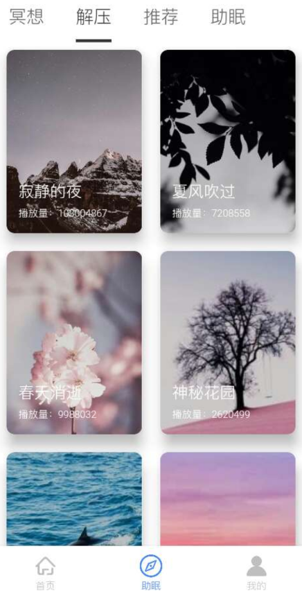 助眠14款基础白噪音,虫鸣鸟叫、雨声、海声、风声、流水声、雷声、燃烧声、环境声等任由您随意组合您想要的声音。