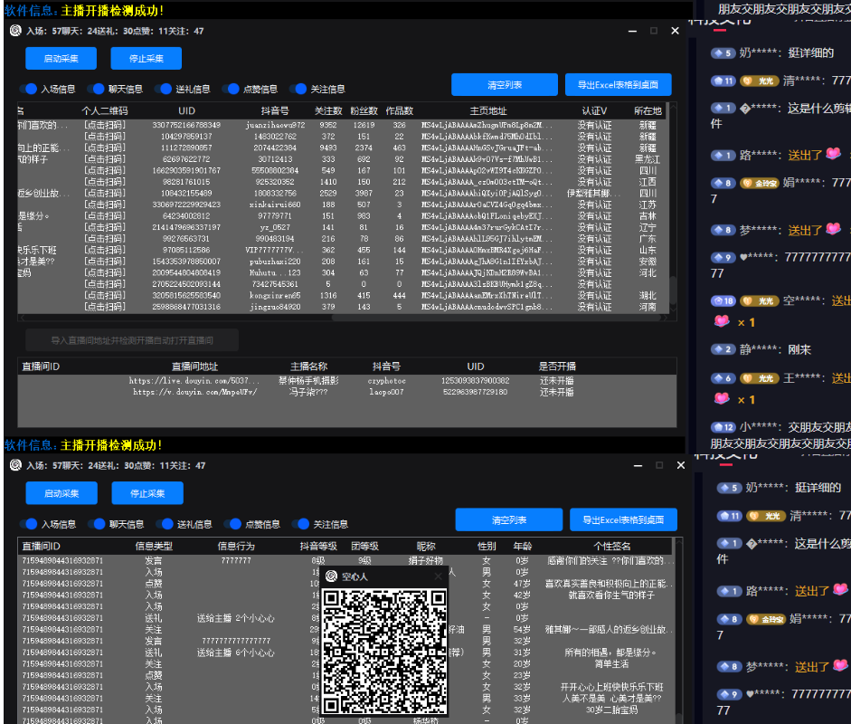 抖音直播助手匿名弹幕获取,新增年龄,所在地