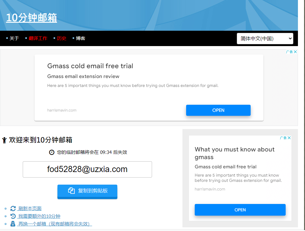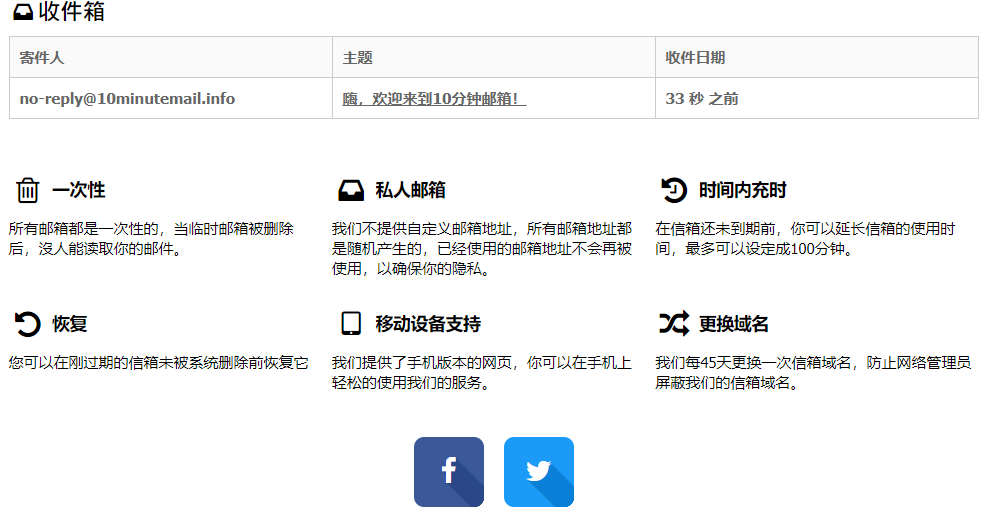广告有点多,不要去相信即可! https://10minutemail.info/
