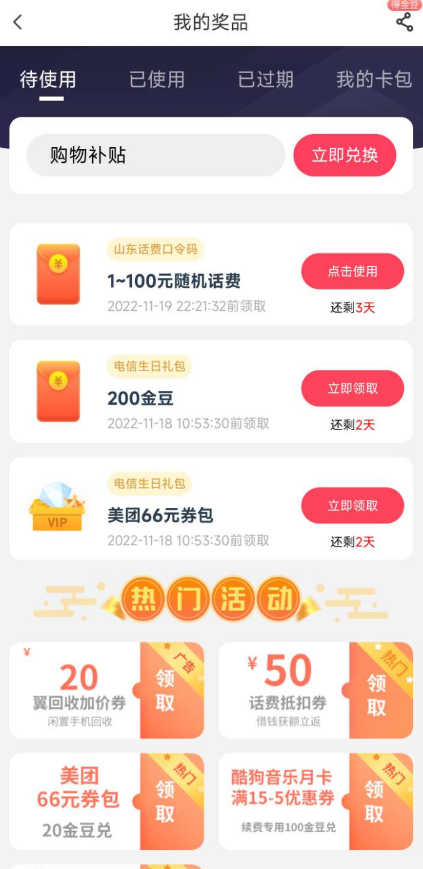 【参与方式】电信APP->我的->我的奖品->输入自己地区对应省份的囗令抽话费