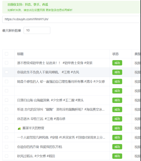 某音、某手、某瓜批量解析去水印