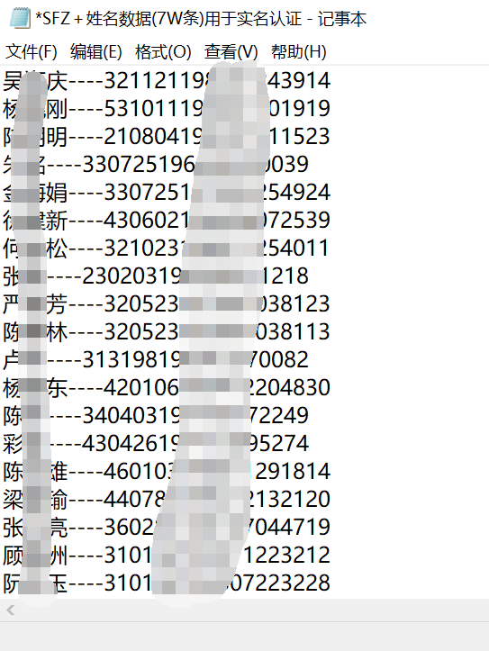 SFZ+姓名数据(7W条)