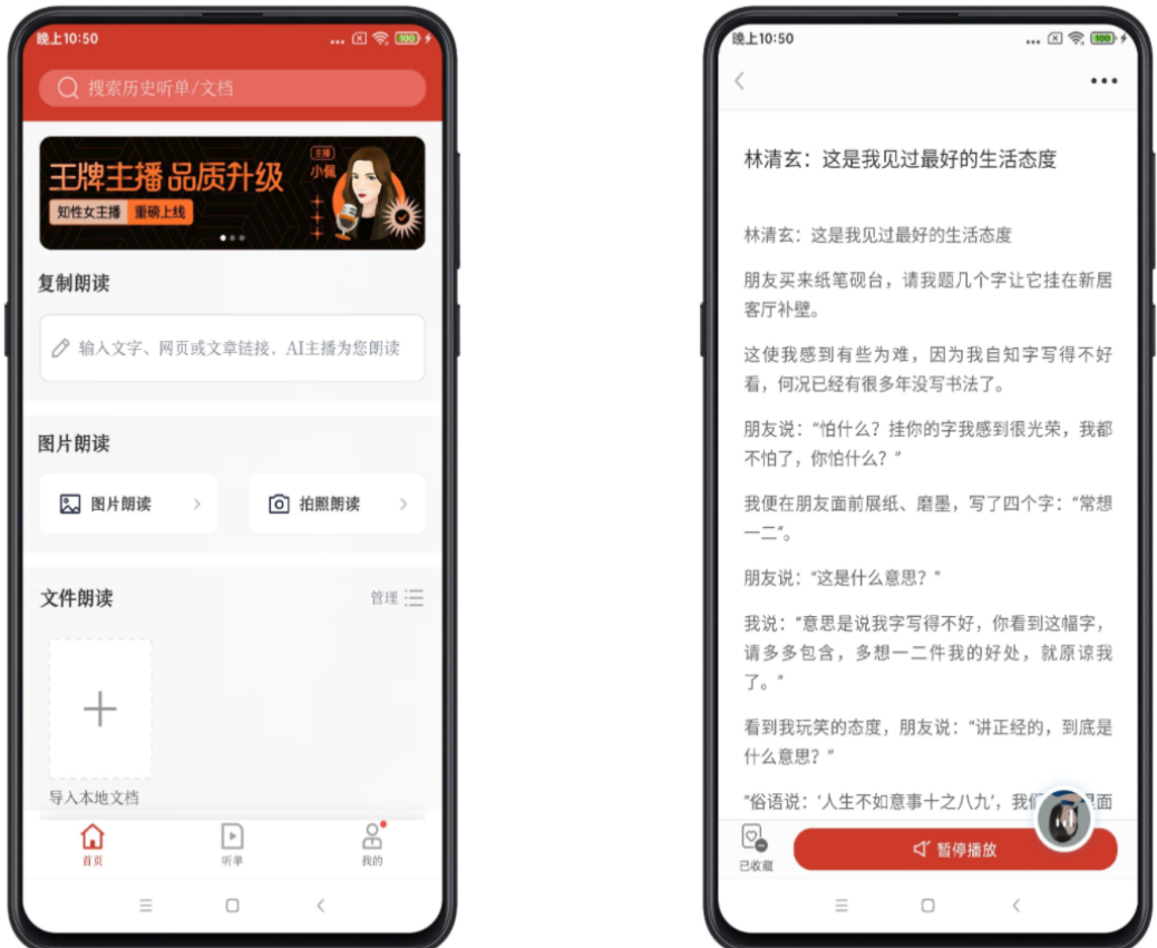 讯飞有声是一款帮助用户以“听”来获取信息的文字转语音朗读软件,由科大讯飞出品,现拥近百位A.I.主播,提供听网页、听文档、听文字、听图片、听书、听小说等多种格式的朗读功能,帮助管理碎片化时间,助力学习和娱乐