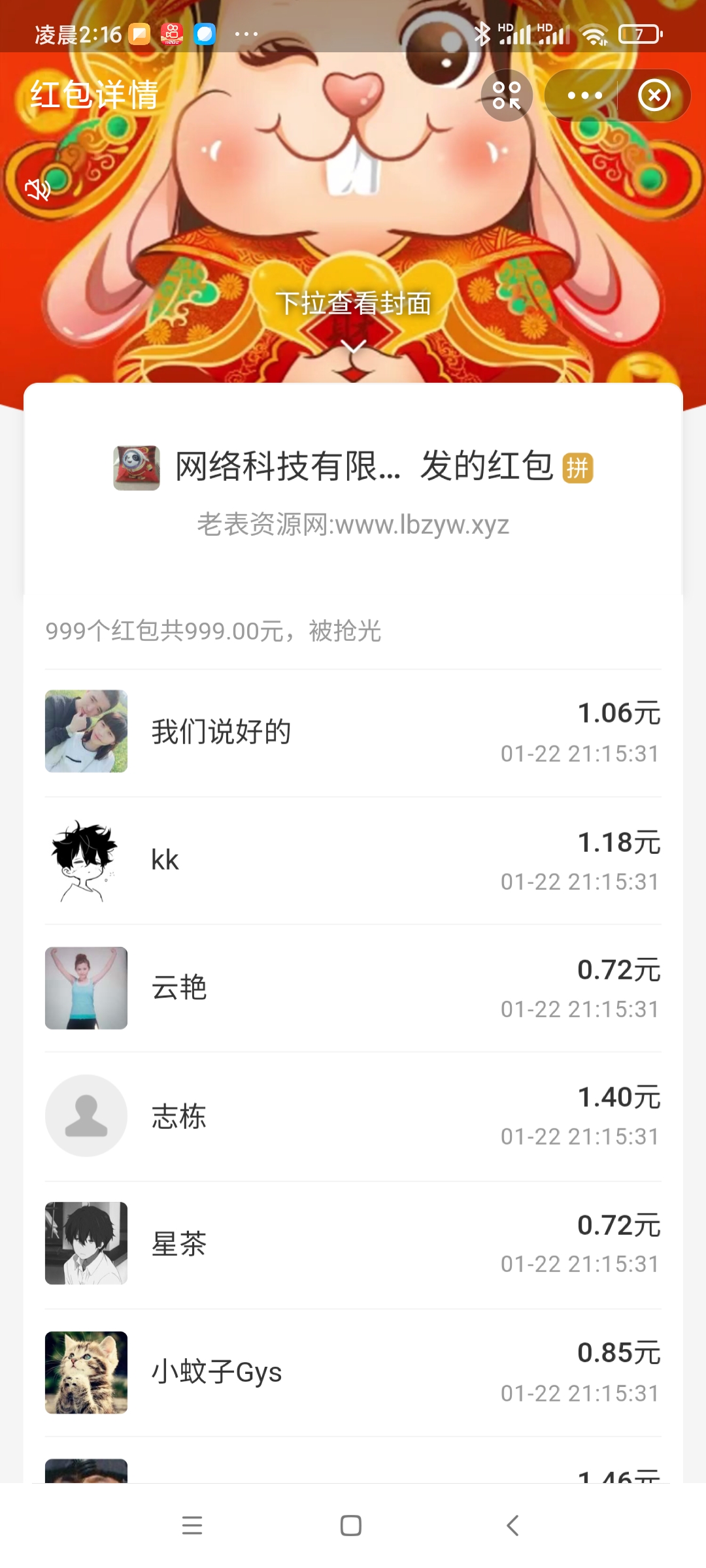 老表今天给兄弟们发了999元红包 寓意我们兄弟感情长长久久!