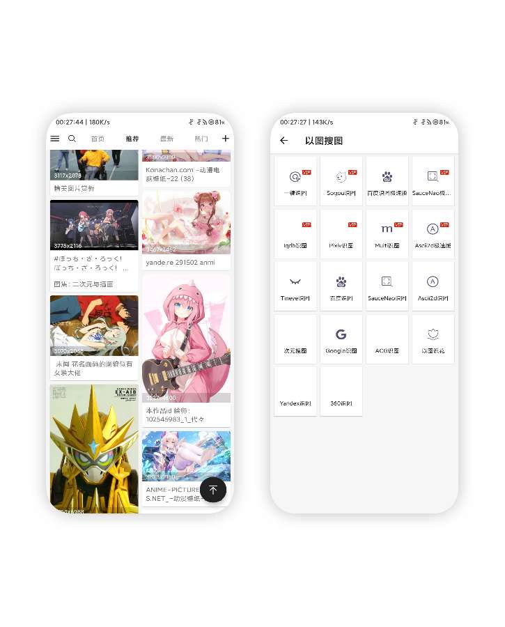 提供PIXIV图片搜索,P站排行榜,作品/画师ID检索,Yande.Re插画检索,整合各类图片搜索引擎,支持百度识图,谷歌识图,拍照搜图等核心功能。提供各类高清壁纸,分类明细,壁纸齐全。主打“二次元”、“插画”、“手机壁纸”、“美女”、“头像”、“表情包”、“内涵图”、“淘图”、“全景图片”、“美图”、“旅行”、“摄影”、“唯美”、“国家地理”“搞笑动图”、“设计”等优质类目