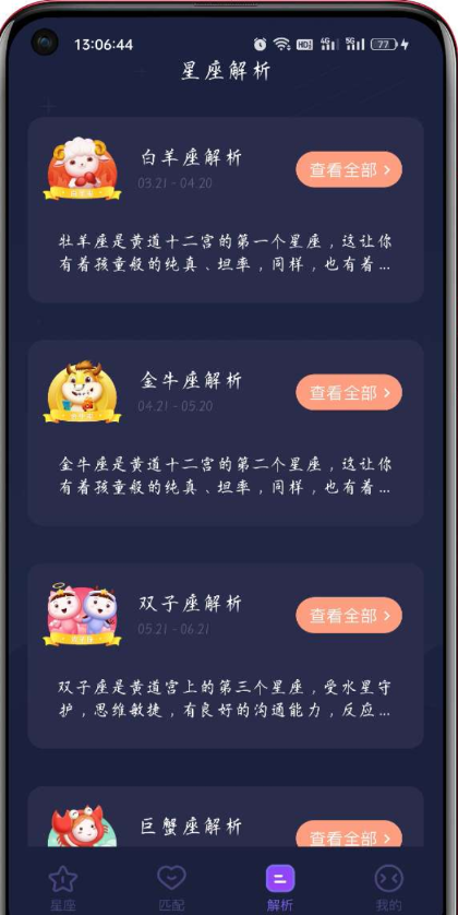 每一个个星座都是有详尽的讲解,也有当月的运势剖析