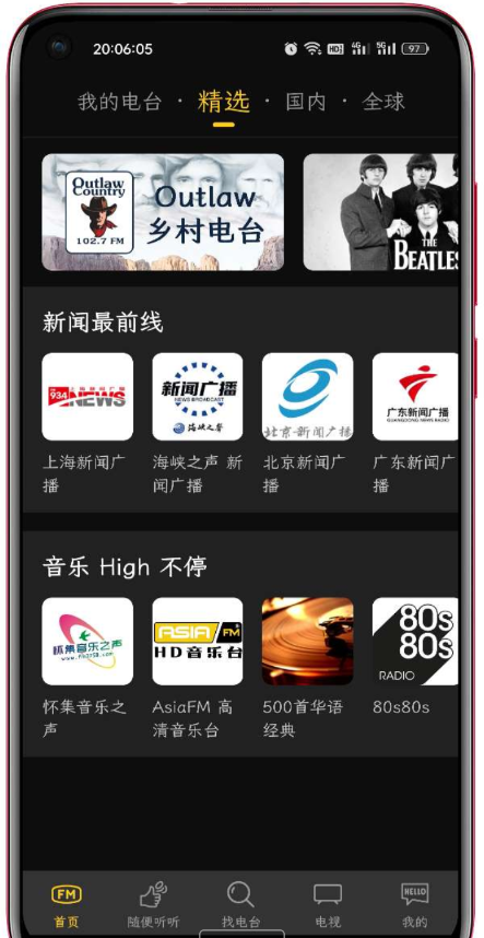 万能收音机,功能齐全,随时可以收听到各种的地方广播电台节目