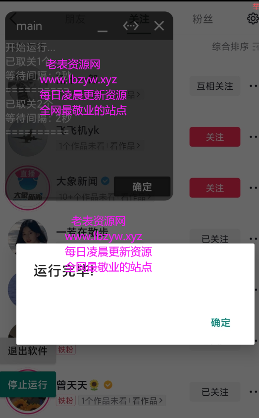 抖音一键取关助手1.0列表那么多,如果手动取消关注,那就很耗费时间了