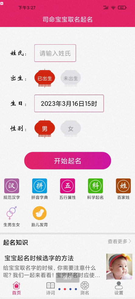 【软件名称】司命宝宝取名起名
