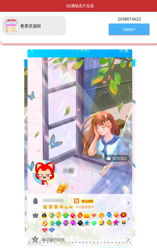 最新QQ满钻名片生成3.0APP来啦,软件内置29个最新超火的QQ装B名片样式,并且支持自定义内容和一键上传功能,无需各种繁琐作,瞬间提高QQ资料B格,装X必备。