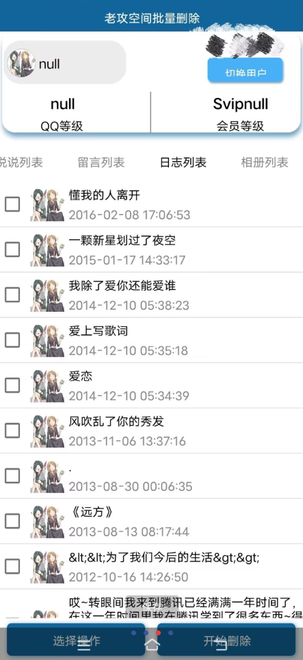 【资源介绍】:QQ空间说说留言日志相册太多逐个删太麻烦?使用空间删除助手,摆脱手动痛苦,一键批量删除,快速安排,省时省力。