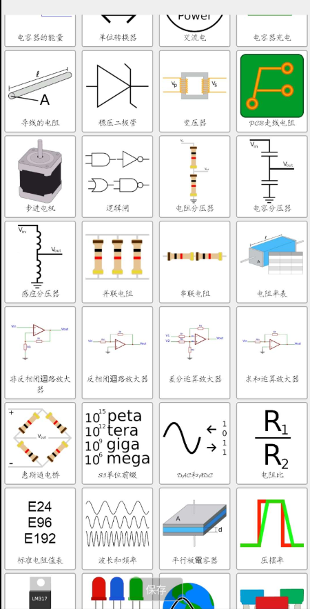 电子电工小工具1.8包含各类电阻、电容器、电感器、集成电路等专业知识