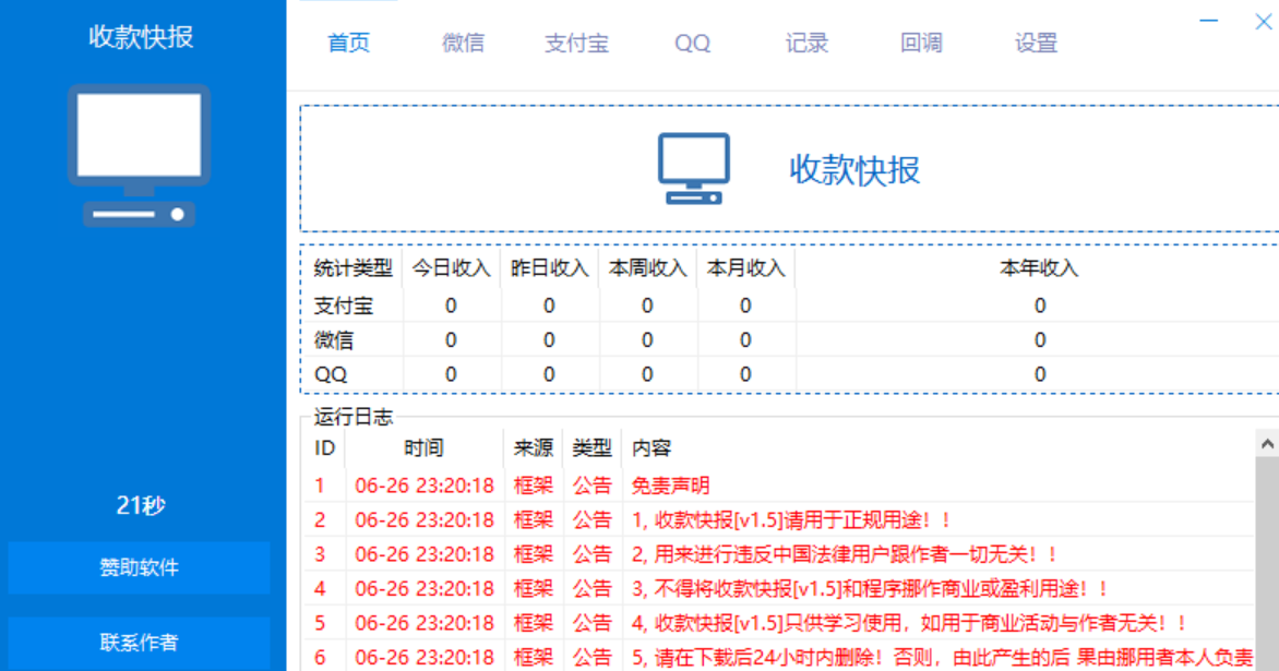 收款快报 永不掉线的PC微信收款语音播报监控端_V1.5