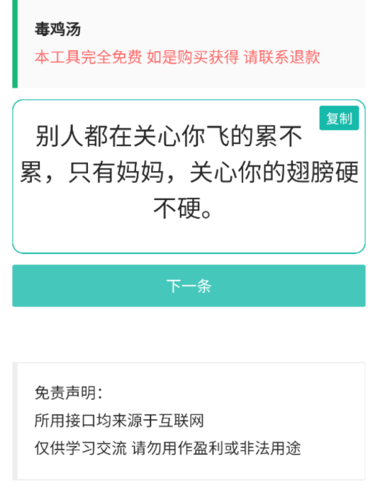 应用介绍:随机毒鸡汤文案 支持一键复制
