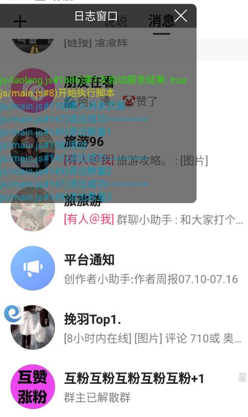 2、退群功能在脚本页面填关键词,点击运行,自动识别群聊进行退出操作