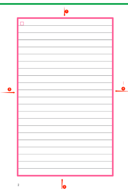 (1.2.3.4)为上下左右留白两根黑线之间为行距,两个字之间的距离为字距,字体大小为粉色方框处字体大小不能超过行距否则会报错。