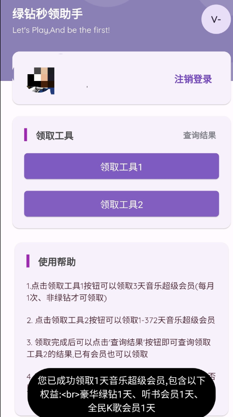 一键秒领QQ绿钻助手 随机1-372天的音乐超级会员