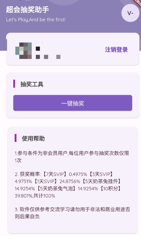 首页 > 软件仓库 > 超会抽奖助手 一键抽取超级会员,必得一项奖励!概率还是挺大的