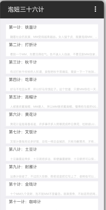 想必兄台你也听过古人的三十六计了吧,那你听过泡妞的三十六计了没?木有?!那可不行啊,身为二十一世纪的现代男性,面对如狼似虎的对手,这是我们必修的课程啊!