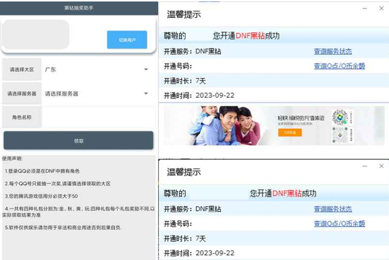 黑钻抽奖助手 一键秒领 几率永久 各式DNF礼包