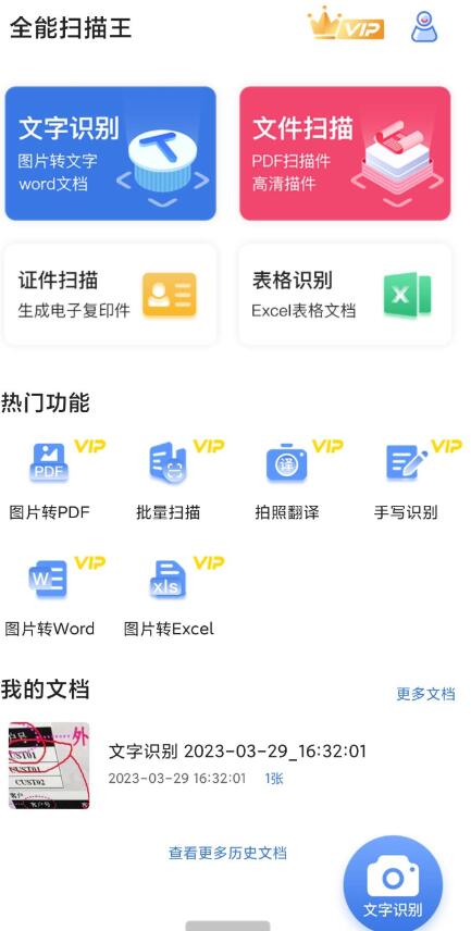 高效的图片转文字传图识字文件扫描软件