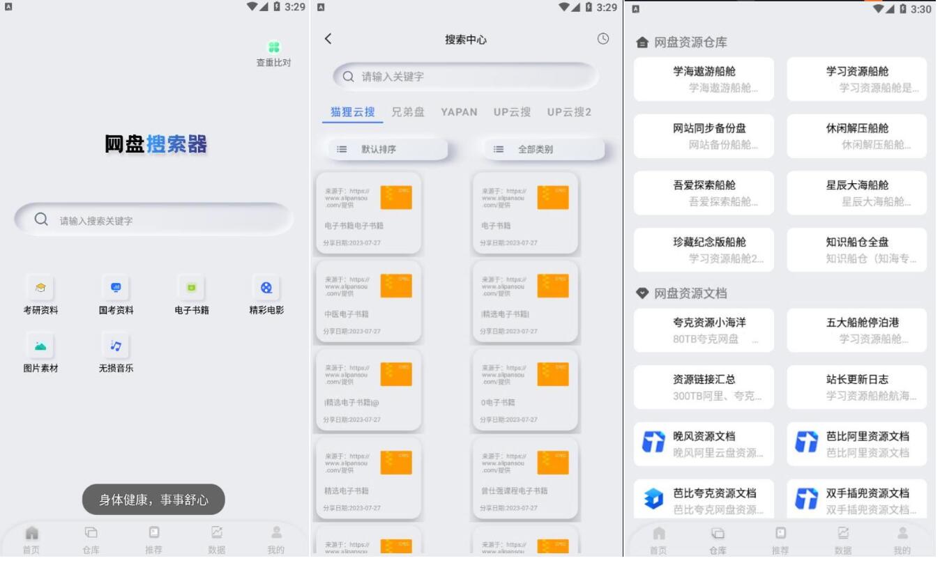 网盘搜索器是一款网盘资源搜索工具,支持搜索考研资料、国考资料、电子书籍、精彩电影、图片素材、无损音乐等, 可搜索蓝奏云、夸克网盘、百度云、阿里云等。