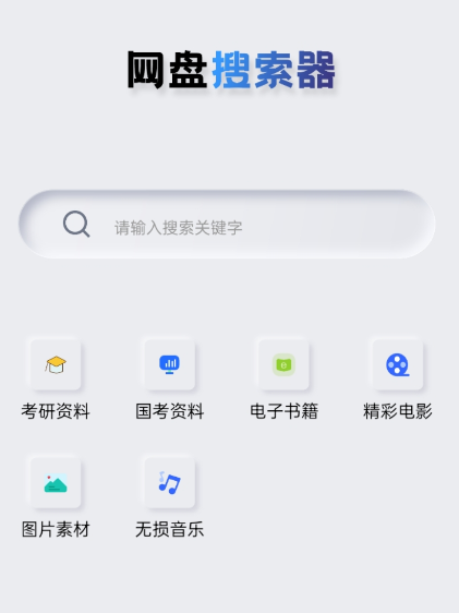 【软件介绍】:网盘搜索器是一款网盘资源搜索工具,支持搜索考研资料、国考资料、电子书籍、精彩电影、图片素材、无损音乐等,可搜索蓝奏云、夸克网盘、百度云、阿里云等。网盘搜索器支持夸克、阿里云、百度网盘等网盘资源搜索,还不错。