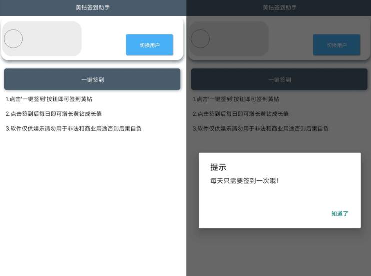 黄钻签到助手 一点即可 每日签到 轻松完成 黄钻成长值