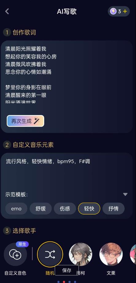 【资源介绍】:AI创作歌姬只要你输入歌词,选择喜欢的音乐风格,唱鸭AI就会帮你创作好听的音乐,还能帮你唱出来!不懂乐器,也能自己创作!