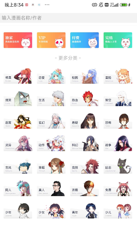 里面有超多题材!修真、玄幻、嫌疑等漫画数不胜数!