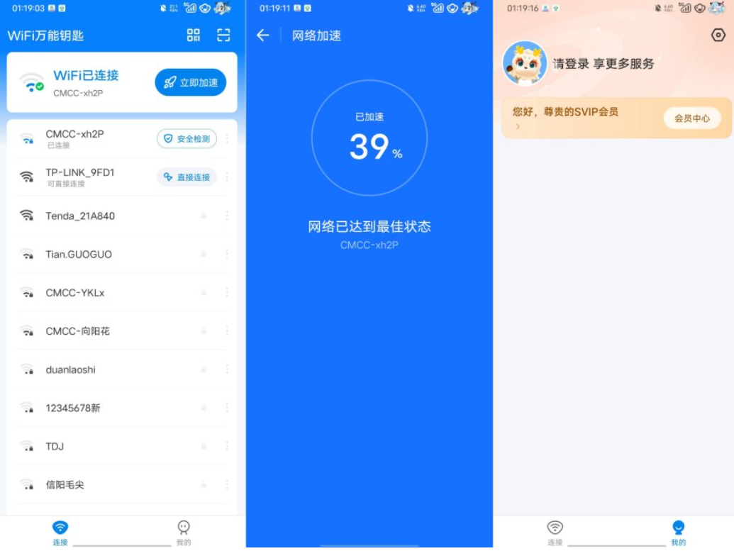 【应用简介】WiFi万能钥匙内置了海量公益的wifi上网热点,网友们可以利用这个软件快速搜索周边可用wifi信号一键上网。还提供了网络测速、密码管理等功能,解决了用户流量不够用的难题,是一个非常不错的上网神器,需要的朋友赶快来下载吧。