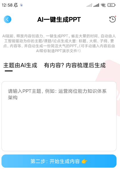 【官方介绍】:AI PPT是一款高效快速的PPT生成工具,能够一键生成符合相关主题的PPT文件,大大提高工作效率。生成的PPT内容专业、细致、实用。