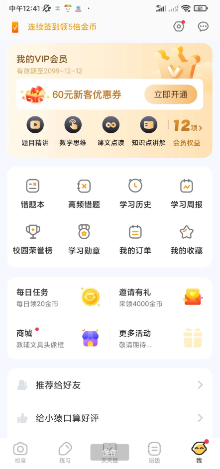 小猿口算App 解锁会员版 是一款在拍照瞬间就能帮熊孩子检查完作业的学习工具类App