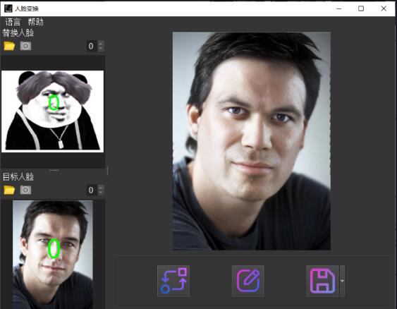 面部交换:可以选择要交换的面孔,并应用该面孔到目标图像中,实现面部交换效果