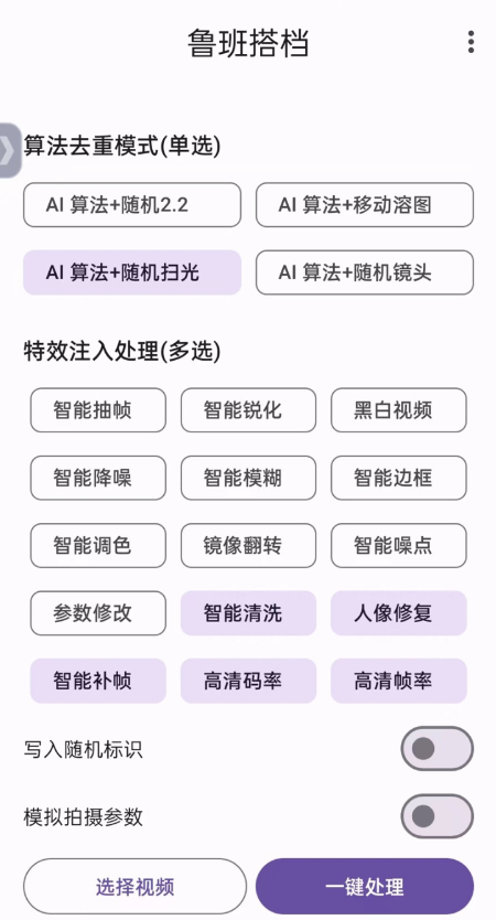支持一键智能化处理、AI算法、随机扫光、随机镜头、移动溶图、参数修改等诸多二次剪辑功能,能有效的去重,