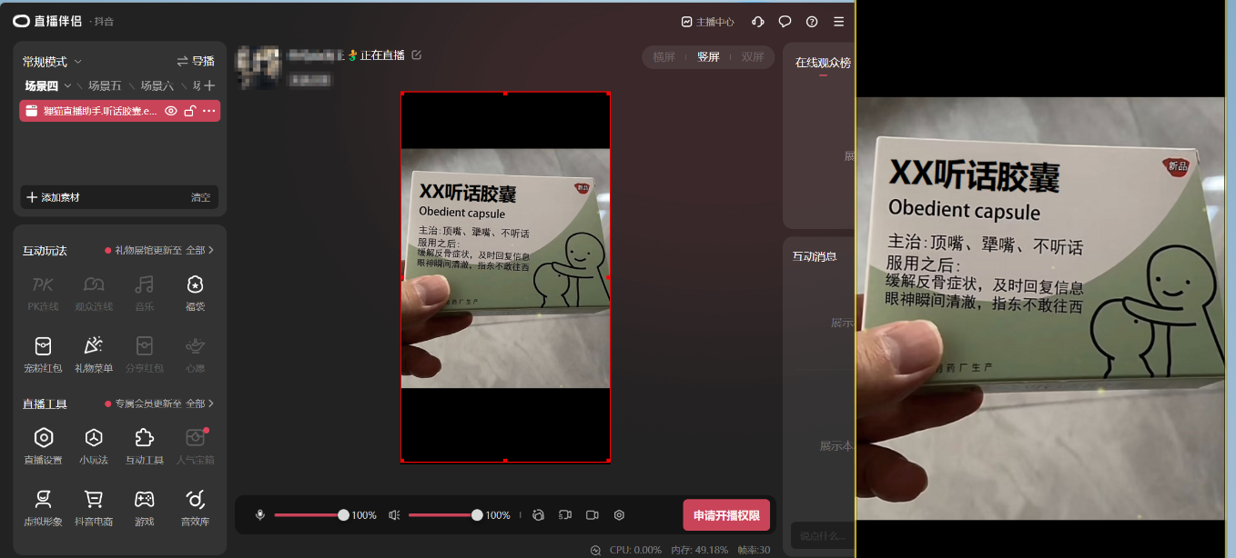 抖音直播助手-听话胶囊 弹幕玩法
