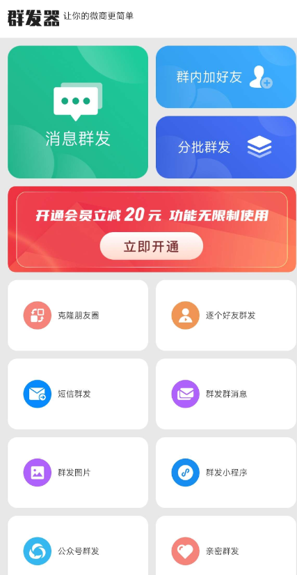 群发器-微商群发是一款专业的微商人脉营销助手类型的群发软件,我们只专心做更好的消息群发APP。群发,微x群发助手,消息群发,微x群发,短信群发,微x群发软件。