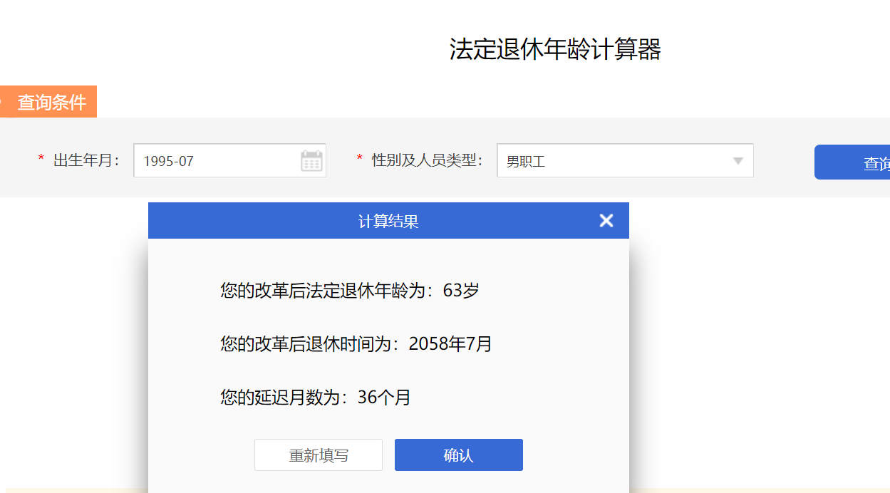 法定退休年龄计算器是一款由国家社会保险公共服务平台推出的在线法定退休年龄计算器,按照《关于实施渐进式延迟法定退休年龄的决定》附表对照关系,可以通过法定退休年龄计算器,选择出生年月、性别及人员类型,即可计算出对应的改革后法定退休年龄、改革后退休时间、延迟月数。