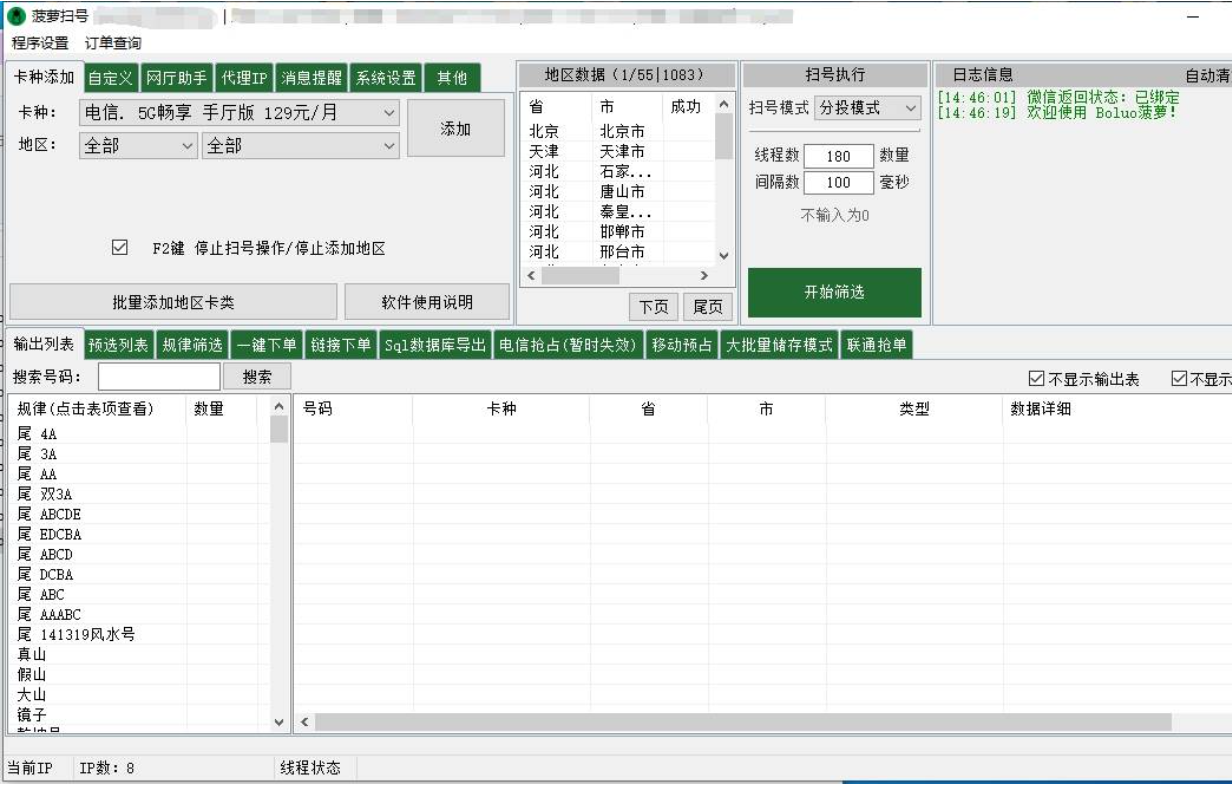 【资源分享】:菠萝筛选 【软件版本】:v357.0.1 【软件大小】:85M 【适用平台】:Windows7及以上系统,Android5.0及以上系统 功能:筛选,指定规律筛选,指定数字排除,筛选数据复制导出,
