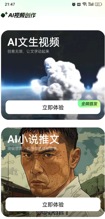 AI图文转视频一键创作,小说推文多种风格视频一键生成。