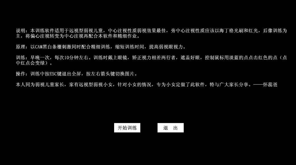 一共两款软件:弱视CAM刺激精细训练和眼博士弱视增视训练软件,每一款都有使用说明。