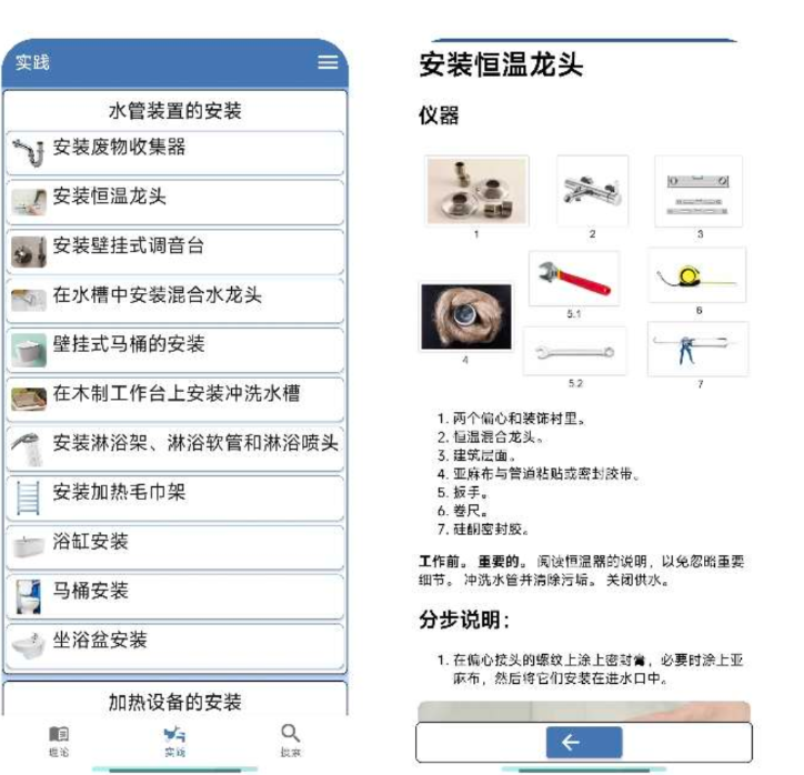 4. 支持在手机上随时随地了解和学习水管工相关的知识,提升工作效率。
