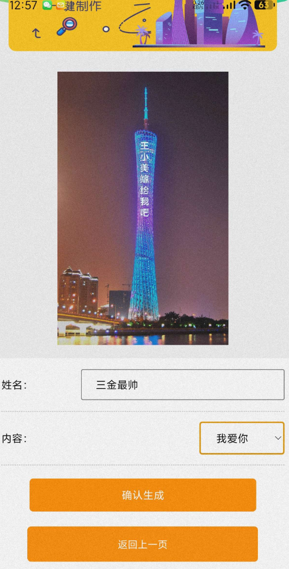 一款广州塔表白生成器APP,一键生成以广州塔为背景的浪漫表白图片! 自定义文字,制作独一无二的表白图片