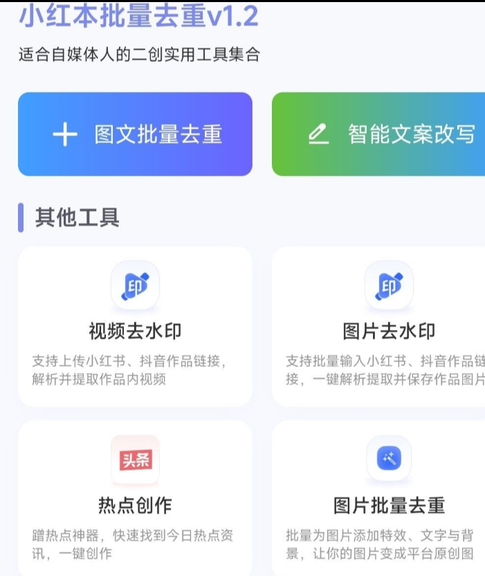 内置多个辅助工具,帮助创作者提取小红书、抖音素材