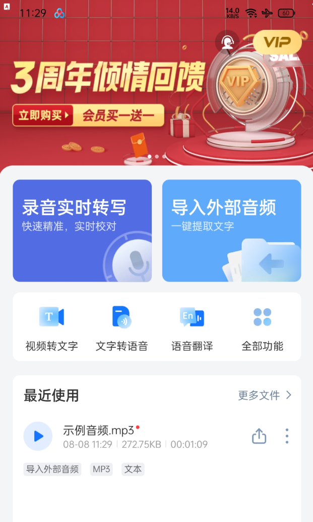 录音转文字助手是一款专注于语音识别、音频转文字、实时语音翻译的多功能app
